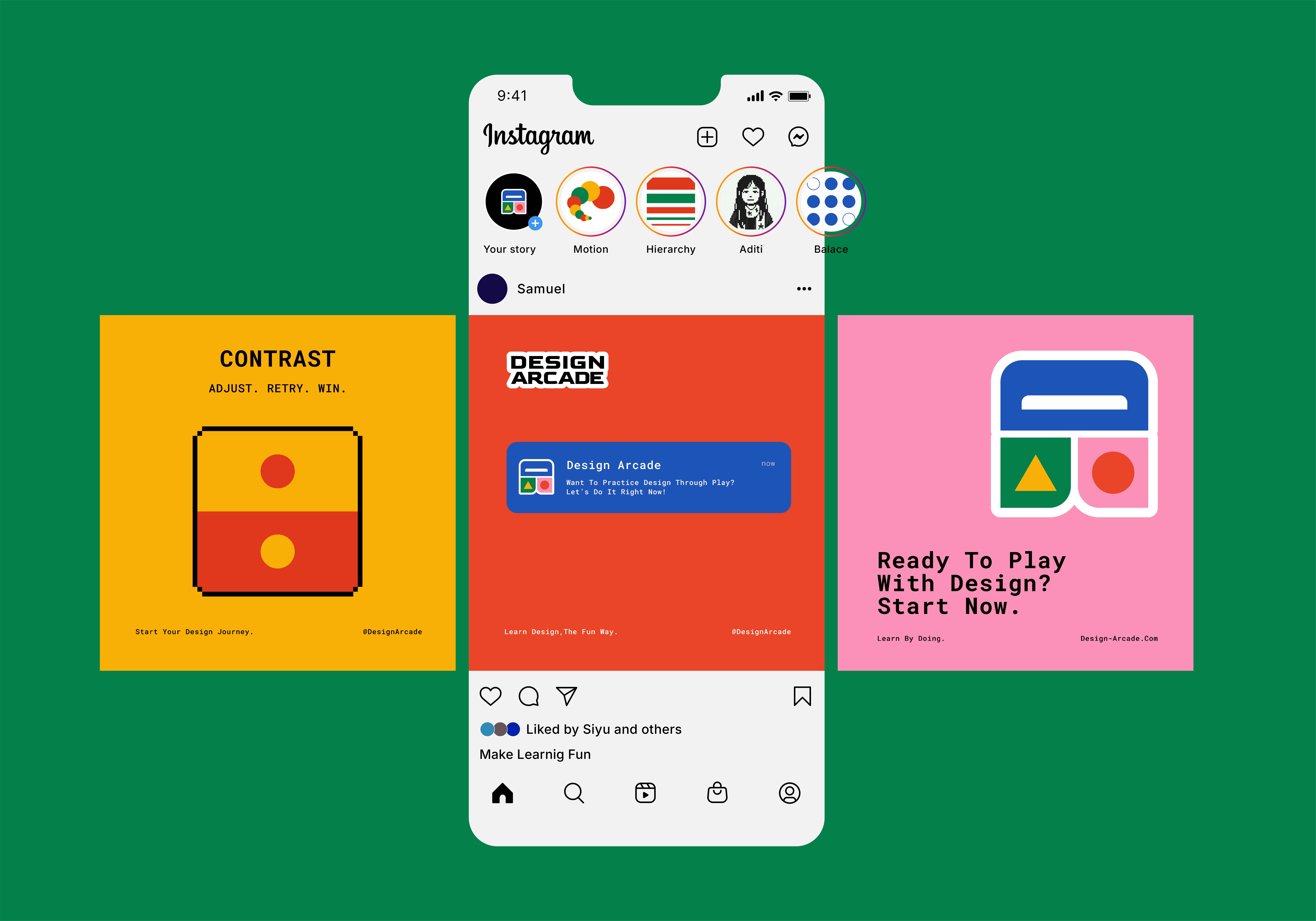 The final identity is a cohesive system built on a flexible logo, vibrant color palette, and structured typography. It communicates the essence of Design Arcade: playful yet credible, modern yet rooted in design tradition. This project reinforced the importance of balancing visual energy with design clarity — a lesson that shaped not only the identity, but also the way I think about branding as a system.